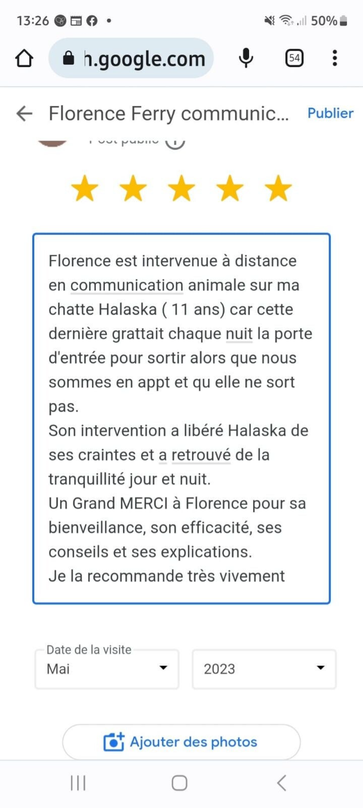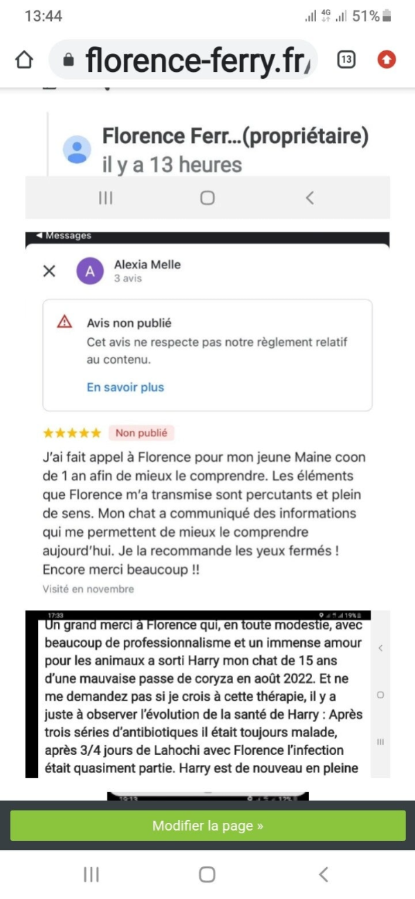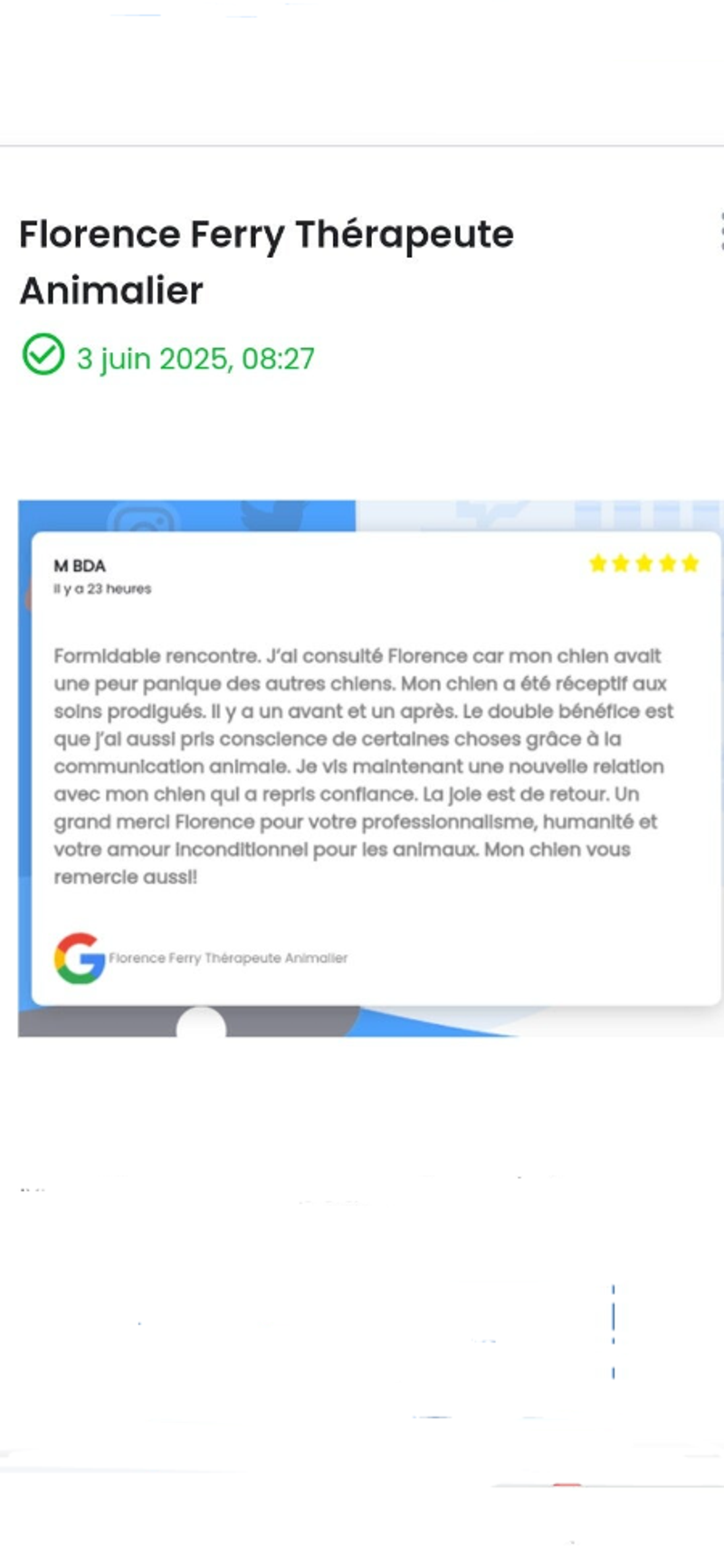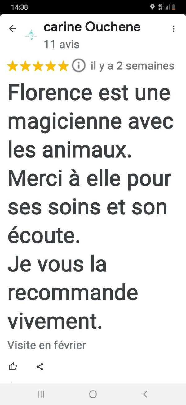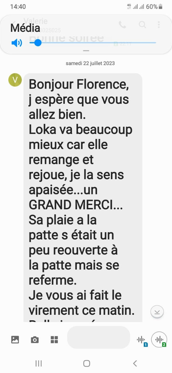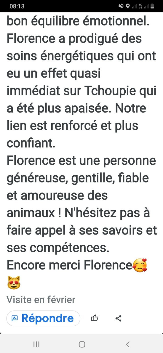 Aux Drs Vétérinaires : Leslie Guillon Cabinet Passion Nac Paris 13ème que je connais depuis 2010.